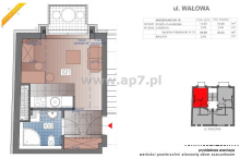 Do sprzedania kawalerka o pow. całkowitej wynoszącej 22,26m2 i pow. użytkowej wynoszącej 20m2 położona na trzecim piętrze w czteropiętrowej kamienicy przy ul. Wałowej 8.