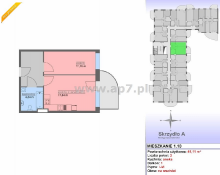 Mieszkanie składa się z: przedpokoju, salonu z aneksem kuchennym i wyjściem na balkon, sypialni, łazienki z WC.
