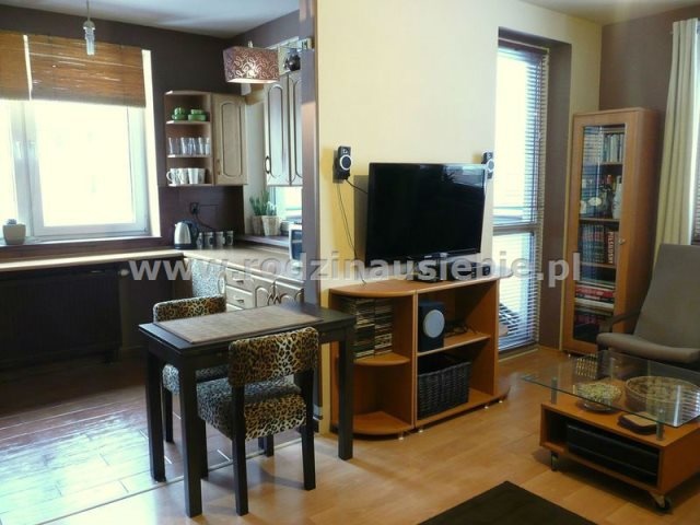Mieszkanie składa się z pokoju dziennego, jasnej kuchni, sypialni, łazienki z WC oraz przedpokoju. W pokojach na podłodze panele w kuchni oraz przedpokoju terakota. Mieszkanie jasne i słoneczne z oknami skierowanymi na południowy-zachód. Kuchnia w zabudowie na wymiar, wyposażona w sprzęt AGD. Łazienka duża, ustawna z wanną. W przedpokoju szafa garderobiana. Z pokoju wyjście na balkon na słoneczną stronę.