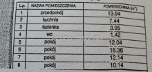 Mieszkanie znajduje się w IV piętrowym bloku i składa się z przedpokoju (13,94 m 2 ), oddzielnej kuchni (7,44 m 2 ), czterech pokoi (18,36 m 2 , 12,04 m 2 , 12,14 m 2 , 10,14 m 2 ), łazienki (3,95 m 2 ),osobnej toalety (1,42 m 2 ) oraz balkonu (od strony południowej).