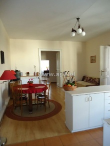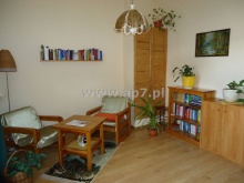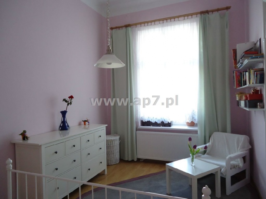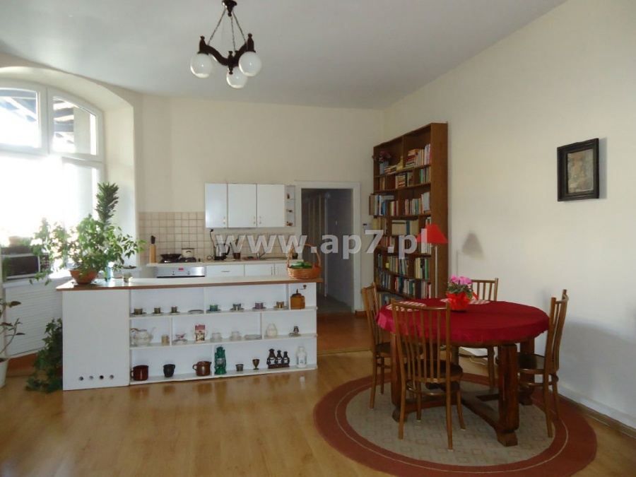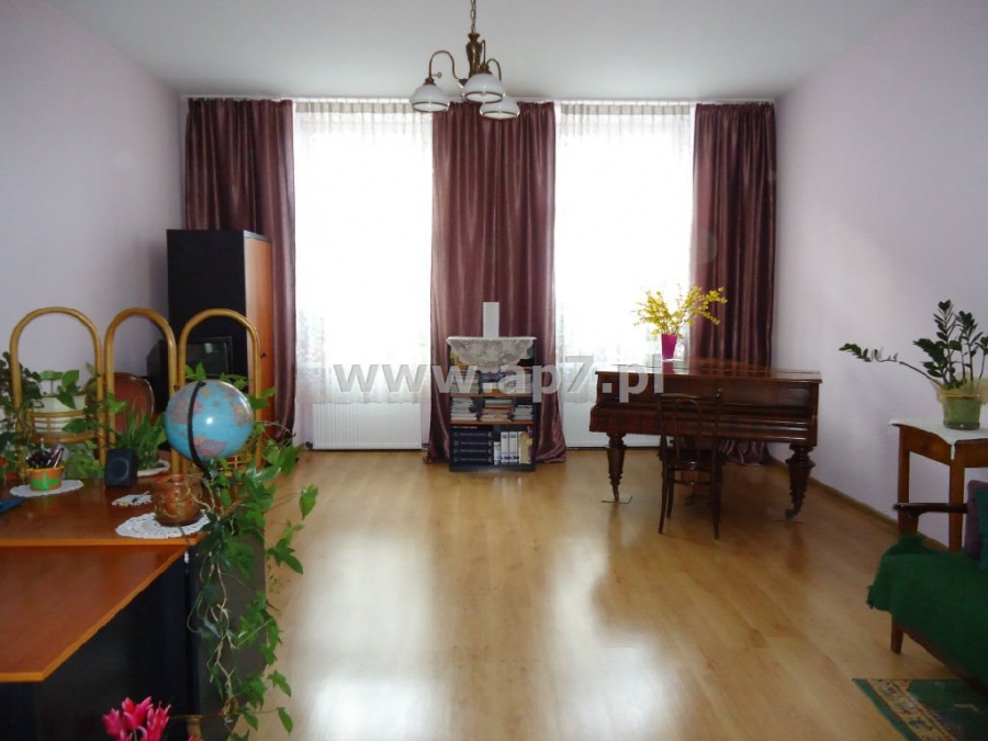 Składa się z holu, dużego słonecznego salonu połączonego z zabudowanym aneksem kuchennym, gabinetu, dwóch sypialni, garderoby, spiżarki i łazienki z wc. Z jednego pokoju wyjście na balkon z widokiem na podwórko.