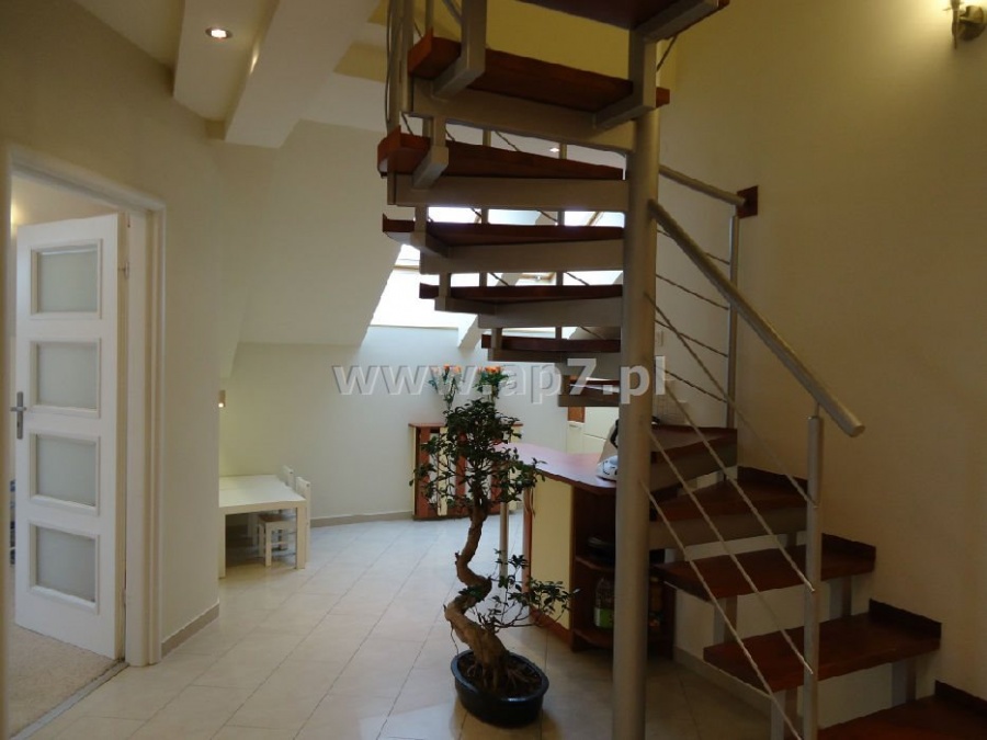 Komfortowe i przestronne mieszkanie dwupoziomowe o powierzchni całkowitej 110m2, usytuowane na ostatnim piętrze w II-piętrowym eleganckim kameralnym budynku znajdującym się na Woli Justowskiej w okolicy ulicy Ornej. Teren wokół budynku jest w całości ogrodzony, z automatycznie sterowaną bramą wjazdową, starannie zagospodarowany zielenią i z parkingiem dla mieszkańców. Oferowane mieszkanie jest gotowe do zamieszkania bez żadnych dodatkowych nakładów finansowych. I poziom składa się z dużego holu, łazienki z wc i kabiną prysznicową, jasnej zabudowanej meblami kuchni, dwóch pokoi i przestronnego salonu z wyjściem na balkon. II poziom to mały przedpokój, sypiania z szafą garderobianą i łazienka z wanną. Podłogi wykończone są gresem i panelami. Okna drewniane z widokiem na Las Wolski i tereny zielone. Ogrzewanie z kotłowni mieszczącej się w budynku. Do mieszkania przynależy też piwnica. Bardzo cicha i spokojna okolica w otoczeniu niskiej zabudowy domów jednorodzinnych. Z dala od zgiełku ruchliwych miejskich ulic, a jednocześnie blisko niezbędnej infrastruktury. Polecam!!!