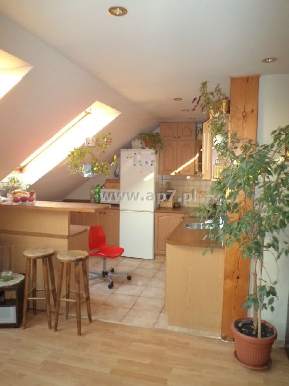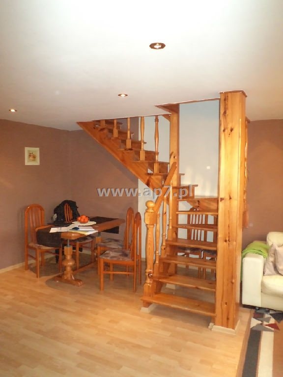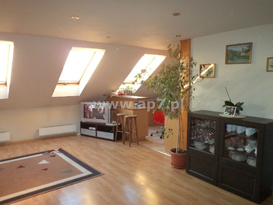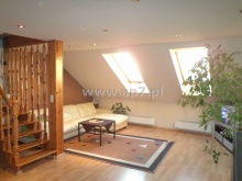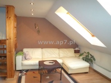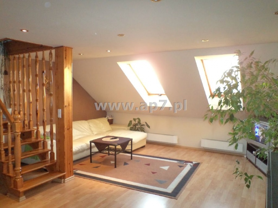 Mieszkanie jest dwupiętrowe, znajduje się na poddaszu w III piętrowym bloku.