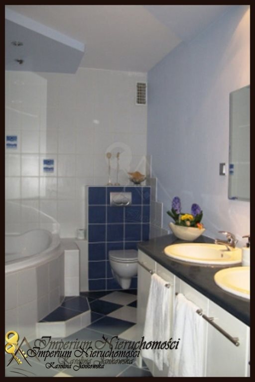 ŁAZIENKA na drugim poziomie w której znajduje się duża wanna, dwie umywalki, wc, oraz garderoba