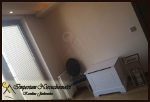 Na drugim poziomie duża sypialniana o powierzchni 9m2, sufit opuszczony z ukrytym dyskretnym oświetleniem, mniejsza sypialnia ma powierzchnię 14m2, oświetlenie dyskretne, umieszczone w załamaniach sufitu. Z sypialni o powierzchni 9 m2 jest wyjście na taras o powierzchni 4,5 m2.