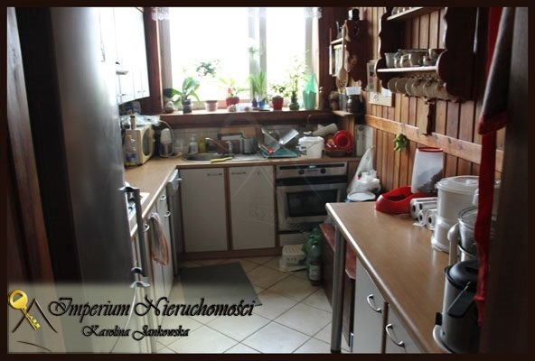 Kuchnia jest w oddzielnym pomieszczeniu, widna, wyposażona w sprzęt AGD. Na podłogach położono terakotę, na ścianach w kuchni jak również w przedpokoju położono drewniane panele ścienne.