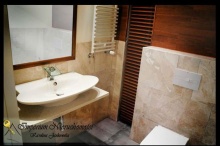 Przy wykończeniu apartamentu zostały zastosowane najlepsze materiały - naturalny parkiet merbau, marmur szczotkowany , konglomerat Quarella, a także renomowany sprzęt i wyposażenie - AEG, Huppe, Imola, Kohler, Villeroy & Boch, Roca.