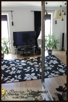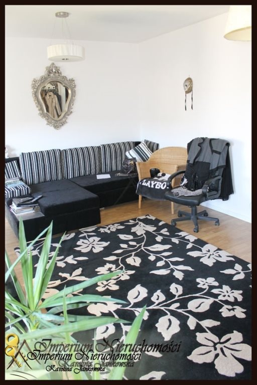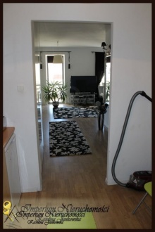 W skład mieszkania wchodzi duży salon z korytarzem ok 25m2 z wyjściem na balkon o powierzchni ok 4m2, salon jest widny i ustawny. Sypialnia położona jest od strony północnej. Kuchnia jest oddzielna z jadalnią w pełni wyposażona w sprzęt AGD. Łazienka jest duża i ustawna z wanną, oraz z przestrzenią do wykorzystania na prysznic. Na podłodze położono terakotę, na ścianach glazura.W przedpokoju zamontowane jest lustro oraz duża zabudowana szafa. W całym mieszkaniu na podłogach położone są panele, a ściany malowane.
