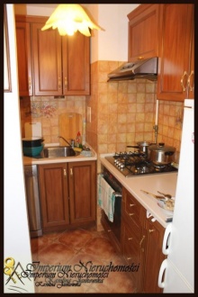 Kuchnia (3m2) aneks, umeblowana, w pełni wyposażona w sprzęt AGD. Ściany wyłożone glazurą.
