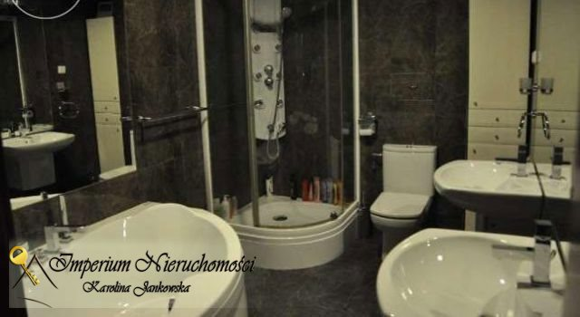 Mieszkanie niezwykle przestronne i słoneczne wykończone w wysokim standardzie. Składa się z kuchni tworzącej z salonem 27m2, trzech ustawnych sypialni 14,10,11 m2, dwóch łazienek 7 i 3,5m2 oraz hollu 10m2. Okna w całym mieszkaniu drewniane z marmurowymi parapetami, w pokojach na podłodze drewno egzotyczne, w kuchni i hollu gres. W kuchni zabudowa na wymiar z drewna czereśniowego, wraz z wysokiej jakości sprzętem AGD pozostaje w cenie. Stolarka wewnętrzna z drewna egzotycznego.