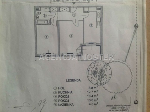 Mieszkanie dwu pokojowe z widną kuchnią. Łazienka, toaleta razem. Pokoje 16,4 ; 13,6 m2. Kuchnia widna - 12,7 m2. Łazienka - 4,6 m2.