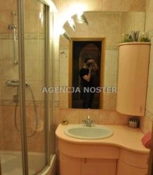 Mieszkanie 84 m2, 3 pokoje (salon o 27,5m2 + kuchnia 16,5m2 pokoje 11m2 i 9m2), łazienka 3,5m2, WC 1,5m2, przedpokój 12,5m2, garderoba 2,5m2, piwnica 6m2. Piętro 3/3. Murowany garaż w cenie 30 000 złotych oraz dodatkowo nieodpłatne miejsce na parkingu przy domu, przynależne do mieszkania. Na podłodze w salonie, dwóch pokojach, garderobie i częściowo w przedpokoju jest dębowa gruba klepka. Druga część przedpokoju, przy wejściu, jest wyłożona granitem. Na podłodze w kuchni gres, a w łazience i WC jest terakota. Mieszkanie po generalnym remoncie, całkowicie umeblowane w wysokim standardzie.