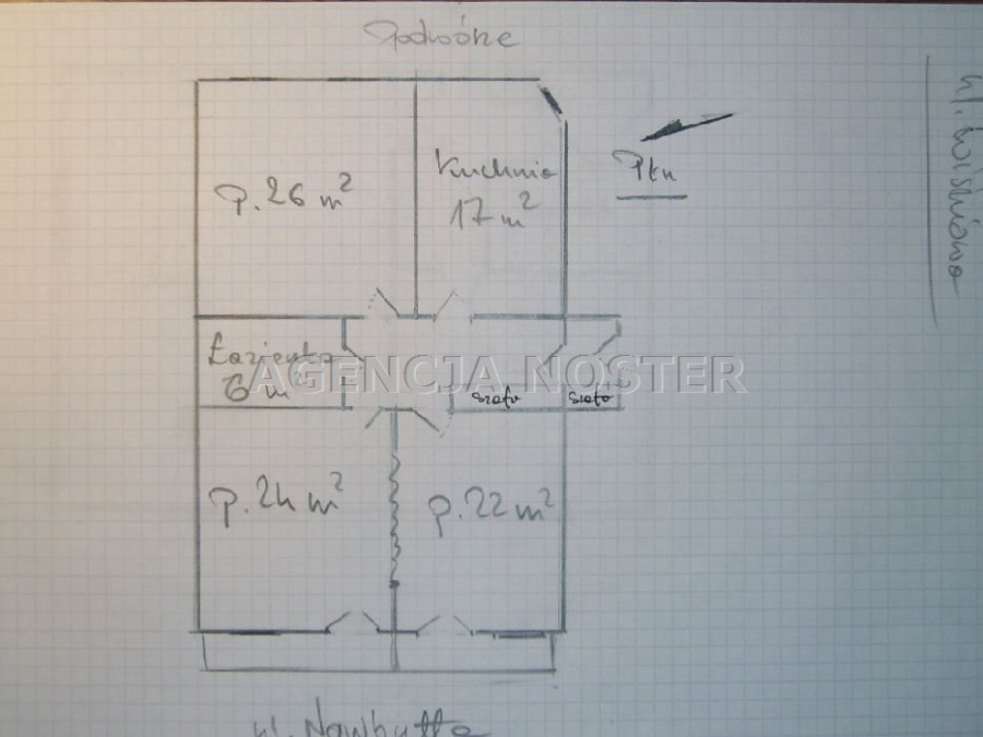 Mieszkanie wysokie 2,98 m - trzy pokoje o powierzchniach - 26 ; 22 ; 24 - dwa ostanie pokoje były połączone cztero skrzydłowymi drzwiami, obecnie lekka ścianka.