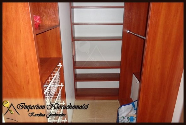 Garderoba wyposażona jest w wbudowane szafki.