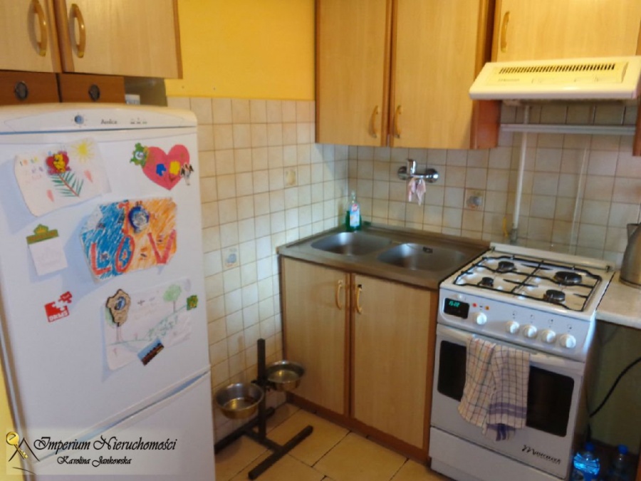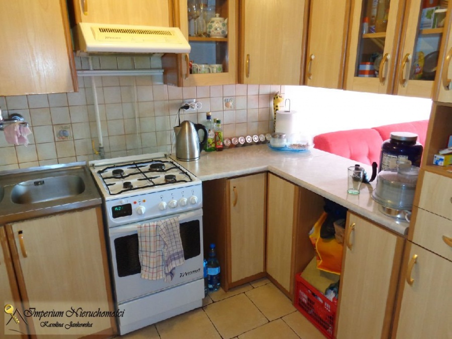 Kuchnia wyposażona jest w zabudowę kuchenną oraz sprzęt AGD. Kuchnię można zupełnie oddzielić od salonu. W łazience znajduje się wanna, umywalka i WC. Pokoje są niewyposażone, w przedpokoju szafa wnękowa.