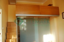 łóżko z szafą (antresola), biurko z półkami, okno płd.