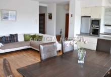 W pokojach panele podłogowe z drewna czereśniowego. W kuchni, holu i łazience gres podgrzewany elektrycznie ze sterowaniem elektronicznym. W pełni wyposażone kuchnia i łazienka.Okna salonu i kuchni wychodza na Płn-Zach, okna sypialni płd-Wsch. Wyjście na taras z obydwu sypialni.