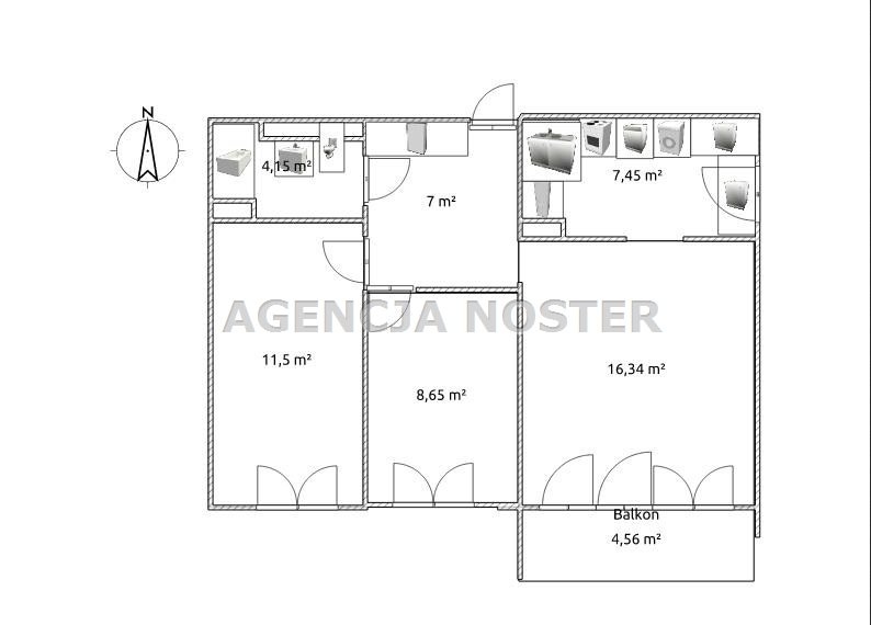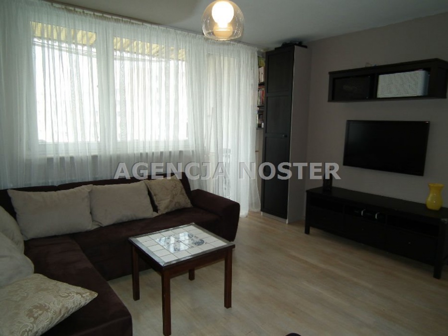 Mieszkanie jest bardzo wygodne, po remoncie w 2010 r. (w tym także generalny remont kuchni i łazienki oraz wykonanie szafy wnękowej w korytarzu), a więc gotowe do zamieszkania po ewentualnym odświeżeniu. Mieści się na ostatnim piętrze dziesięciopiętrowego budynku z 1976 roku, okna wychodzą na południowy-wschód. Pokój dzienny 16 m2, dwie sypialnie (11 m2 i 9 m2), łazienka (4,5 m2) i osobna kuchnia (7,5 m2) z oknem, z wejściem z salonu (możliwość przerobienia na aneks kuchenny, lub przywrócenia wejścia z korytarza jak w pierwotnym planie mieszkania), duży przedpokój z pojemną szafą wnękową, duży balkon (4,5 m2). Czynsz 650,00 zł.