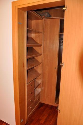 Dużym atutem jest możliwość przeniesienia kuchni do salonu i uzyskanie dodatkowego, małego pokoju, jak również wykonania toalety w miejscu garderoby.
