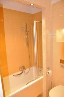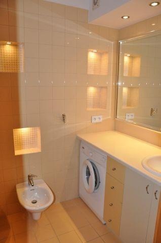 Łazienka: 6 m2 (szafki, wanna z prysznicem, umywalka, pralka, toaleta, bidet)