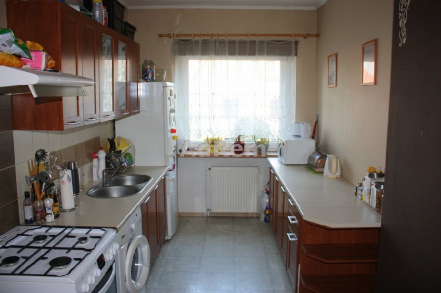Mieszkanie o pow. 73 m2 składa się z: 3 pokoi, kuchni, łazienki i przedpokoju. Salon główny (30m2) z dużą szafą Komandor, umeblowany. Sypialnia (14m2) przechodnia, ale widna, z oknem, za nią druga sypialnia (6m2). Kuchnia (12m2) oddzielna, widna, w panelach, z zabudową kuchenną. Łazienka z oknem, razem z wanną i wc w kaflach (5m2). Przedpokój 6 m2. W pokojach na podłogach panele, ściany w gładzi i ozdobnej tapecie. Nowa instalacja grzewcza z grzejnikami i piecem dwufunkcyjnym. W cenie zostają meble i wyposażenie łazienki.