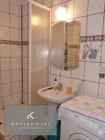 Łazienka o powierzchni ok. 3 m2, która została w całości wykafelkowana jasnymi płytkami, zamontowano w niej kabinę prysznicową oraz umywalkę. Oświetlenie- halogenowe.