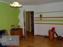 Trzeci pokój zajmujący powierzchnię ok. 15 m2 stanowi krainę zabaw dla najmłodszych. Wnętrze wypełniają różne kolory ścian, które z pewnością przypadną do gustu najmłodszym. Podłogę pokryto jasnymi panelami.