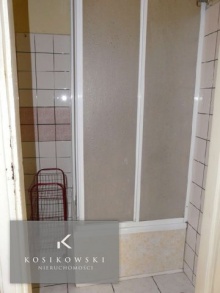 W łazience o powierzchni ok. 3 m2 znajduje się prysznic,WC. Ściany oraz podłogę pokryto terakotą łazienkową w kolorze białym. W tym pomieszczeniu znajduje się również dwu-funkcyjny piecyk gazowy ogrzewający całą nieruchomość.