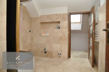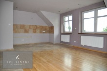Duży salon o powierzchni ok. 35 m2 z aneksem kuchennym, podłoga pokryta parkietem dębowym i kamieniem naturalnym - trawertynem, ściany w gładzi tynkarskiej i płytach kartonowo - gipsowych, drzwi wejściowe- dźwiększczelne, dębowe, nowe grzejniki oraz duże okna PCV, parapety drewniane, dodatkowe oświetlenie halogenowe. W tym pomieszczeniu znajdują się robione na zamówienie, dębowe schody prowadzące na 2 poziom mieszkania. Łazienka o powierzchni ok. 4 m2 w pełni wyposażona, tj. : narożna wanna, umywalka, WC, piecyk gazowy, podłoga i ściany pokryte kamieniem naturalnym - trawertynem i płytkami ceramicznymi oraz został przywieszony grzejnik łazienkowy na ręczniki. Kolejny pokój ma powierzchnię ok. 12 m2, nowe okno PCV , drzwi wejściowe do pomieszczenia - dębowe, na podłogę zastosowano parkiet dębowy. Drugi poziom to duże otwarte pomieszczenie o powierzchni ok. 30 m2, dobrze oświetlony 3 oknami dachowymi, z gładzią na ścianach. Podłogę dodatkowo wygłuszono, zaizolowano i wyrównano płytami wiórowymi, co stanowi doskonałe podłoże pod wykładzinę dywanową lub panele. Pozostałe pomieszczenia na tym poziomie wykorzystywano są jako łazienka o powierzchni ok. 8 m2, (podłoga i ściany pokryte kamieniem naturalnym trawertynem, w wyposażeniu jest nowoczesna kabina prysznicowa z panelem posiadającym funkcję sauny), 2 garderoby o powierzchniach 6 i 9 m2, podłogi pokryte kamieniem naturalnym trawertynem, większa z nich posiada okno dachowe. Do mieszkania przynależy piwnica o powierzchni ok. 3 m2. Mieszkanie jest ofertą dla bardzo wymagającego klienta, ceniącego sobie wysoki standard wykończenia i duże, otwarte, mieszkalne przestrzenie. Mieszkanie zlokalizowane jest na namysłowskim rynku, jednocześnie w nowej kamienicy. Bliskość sklepów, punktów usługowo- handlowych, urzędów i banków podnosi jej atrakcyjność. W niedalekim sąsiedztwie znajdują sie kościoły oraz parki, które nadają niepowtrazalnego klimatu podczas porannego jogingu lub spaceru.