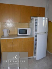 W kuchni (ok.9m2) znajdują się meble w odcieniach jasnego brązu, zlewozmywak. Ściany pokryto farbą w jasnym kolorze. Na podłodze znajdują się jasne kafle. Pomieszczenie jest duże i funkcjonalne, jego wnętrze można zmodyfikować w zależności od kreatywności i oczekiwań przyszłych właścicieli.