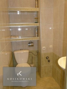 Pozostałe trzy pokoje o łącznej powierzchni ok. 45 m2 funkcjonują jako sypialnie. W jednym z nich znajduje się duże okno balkonowe, przez które przechodzimy na balkon ukazujący podwórze oraz pobliskie sklepy i punkty usługowe. Podłogi w tych pomieszczeniach zostały pokryte panelami, a na ścianach znajduje się tradycyjny tynk. Kuchnia o powierzchni ok. 16 m2 została w pełni wyposażona, a mianowicie w jasne meble kuchenne, płytę indukcyjną gazową, piekarnik oraz lodówkę. Na podłodze zostały położone duże płytki ceramiczne, ściany częściowo w kaflach oraz w tynku gipsowo- wapiennym. Łazienka w całości pokryta glazurą łazienkową (dwukolorową- jasny beż oraz brąz). Mieści się w niej wanna, umywalka oraz piecyk gazowy ogrzewający wodę. Zamontowano oświetlenie halogenowe. Osobnym pomieszczeniem jest toaleta, w której dodatkowo zamontowano umywalkę. Całość pokryto kremowo-zieloną glazurą łazienkową, oświetlenie halogenowe. Do każdego z pomieszczeń prowadzi duży hol- przedpokój o powierzchni ok. 17 m2. Znajduje się w nim obszerna garderoba, która mieści w sobie półki oraz wieszaki na odzież. Dodatkowym atutem tego pomieszczenia jest szafa wnękowa, która pomieści najpotrzebniejsze rzeczy. Ogrzewanie mieszkania wliczone do czynszu, który wynosi ok. 550 zł, w tym także opłata za: fundusz remontowy, wywóz śmieci, administracja. Wyjście z czystej klatki schodowej na spokojne, ciche podwórze z możliwością parkowania samochodów. W sąsiedztwie mieszkania występują sklepy spożywcze, odzieżowe, punkty usługowe, przychodnia zdrowotna oraz instytucje administracji publicznej.