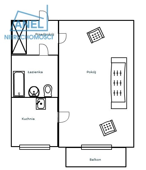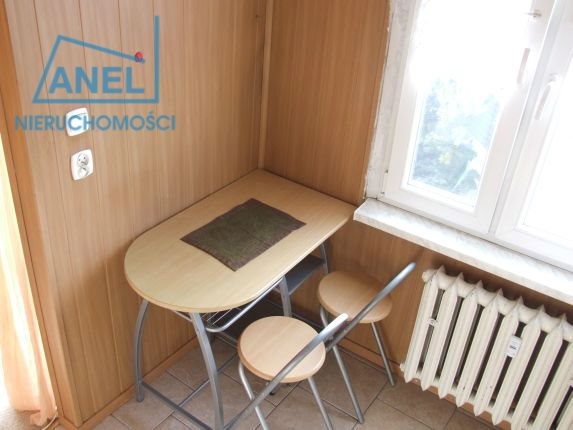 Mieszkanie składa się z przedpokoju z wnęką, kuchni z oknem, łazienki z WC oraz pokoju z wejściem na balkon. Ciepła woda jest z piecyka gazowego. Okna są nowe plastikowe. Ogrzewanie jest miejskie. Media: prąd, woda, gaz. Czynsz wynosi 274zł.