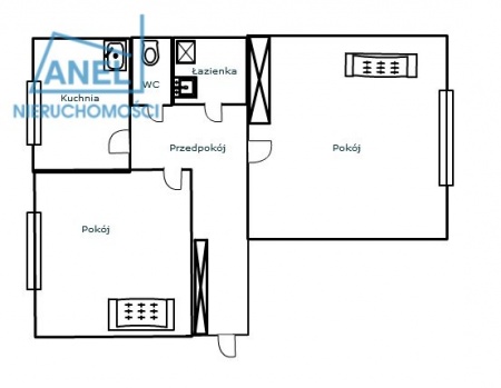 Mieszkanie składa się z dwóch przedpokoi, oddzielnej widnej kuchni, łazienki z kabiną prysznicową i wanną, osobnego WC oraz trzech niezależnych pokoi. Z największego pokoju jest wejście na balkon.