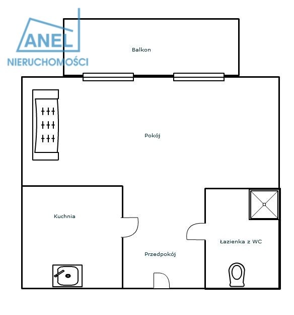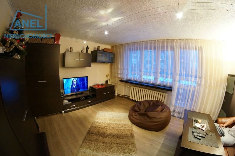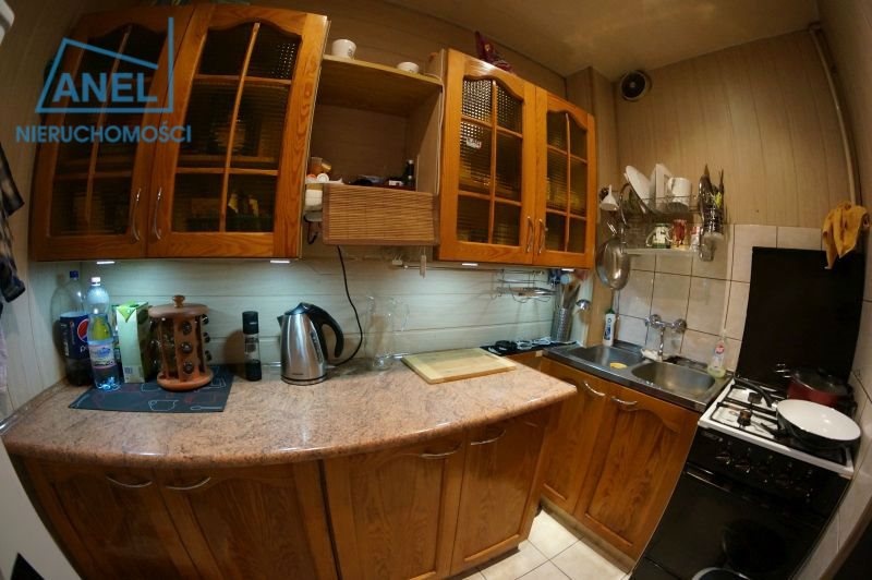 Mieszkanie składa się z kuchni, wykafelkowanej łazienki z WC, jednego pokoju i przedpokoju. Na podłogach położone są kafelki (przedpokój, kuchnia, łazienka) i panele (pokój), natomiast na ścianach gładzie. Ogrzewanie jest miejskie (z sieci), natomiast ciepła woda z bojlera elektrycznego. Z pokoju jest wejście na duży balkon.