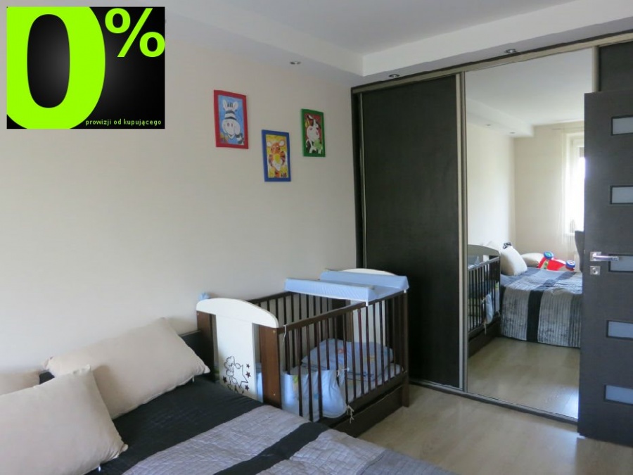 W pokoju dziennym i w sypialni wybarwione na beżowo panele podłogowe. Całość mieszkania urządzona w spokojnych, beżowych odcieniach. Ciekawa, nowoczesna zabudowa przedpokoju W sypialni pojemna 3- drzwiowa szafa z drzwiami przesuwnymi.