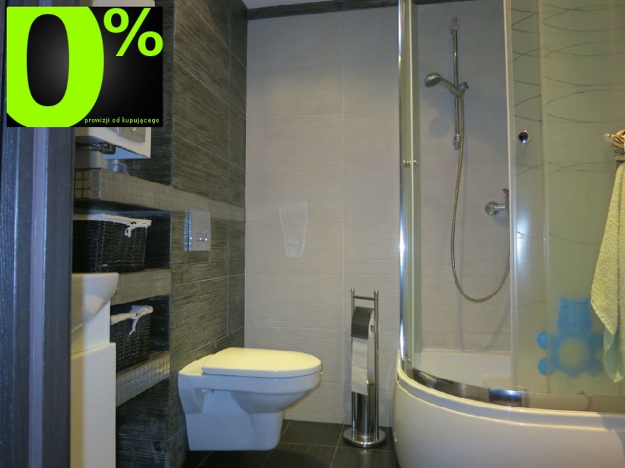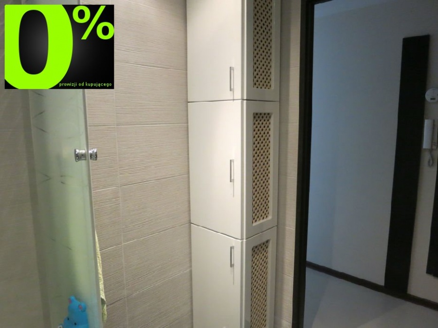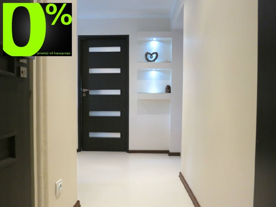 Mieszkanie po modernizacji - zaprojektowano przestronną i przemyślaną przestrzeń do życia. W skład mieszkania wchodzą dwa niezależne pokoje, otwarta na holl kuchnia i łazienka. Mieszkanie w pełni urządzone i wyposażone (istnieje możliwość zakupu mebli pokojowych). W kuchni nowoczesna zabudowa w kolorze wenge (górny ciąg szafek kuchennych w kolorze beżowym) - wbudowany wysokiej jakości sprzęt AGD (lodówka, zmywarka, piekarnik, ceramiczna płyta grzewcza, okap i zabudowana pralka automatyczna).Na podłodze eleganckie, duże, beżowe płytki z gresu polerowanego. Podwieszany sufit z oświetleniem halogenowym.