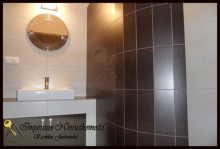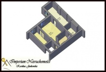 Z korytarza, wyposażonego w pojemną, praktycznie wyposażoną szafę garderobianą z drzwiami przesuwnymi, wchodzi się do największego, pokoju (23,2m2). Pokój ten został podzielony oryginalnymi drzwiami przesuwnymi na dwa pomieszczenia: sypialnie (ok. 8m2) oraz salon (ok.15m2) z możliwością utworzenia aneksu kuchennego. Z salonu wchodzi się po prawej stronie, do pomieszczenia przeznaczonego wg projektu na kuchnie, którą można dowolnie zaadoptować na: kuchnie z jadalnią, pokój z aneksem kuchennym lub pokój. W korytarzu i pokojach na podłodze położono panele drewniane stylizowane na antyczne w kolorze mahoniu, ściany pokryto gładzią gipsową i pomalowano na spokojne kolory w odcieniach beżu i brązu. W łazience, na podłodze i ścianach położono płytki ceramiczne. Łazienkę wyposażono w: prysznic, umywalkę oraz ubikację, zamontowano wysokiej klasy armaturę.