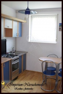Oddzielna kuchnia z oknem o powierzchni 7,5 m2, łazienka o powierzchni 3,5 m2 z wanną. Przedpokój o powierzchni 5 m2 oraz dwa pokoje o powierzchni 20 m2 i 10 m2. Logia o powierzchni 5m2. W mniejszym pokoju oraz w korytarzu zabudowa typu "Komandor". Okna PCV z roletami zewnętrznymi, wystawione na południe i zachód. Na podłodze