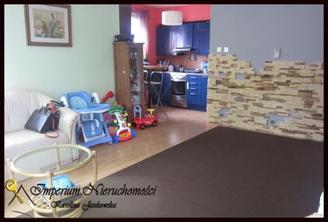 W pokojach ściany są malowane farbami emulsyjnymi, podłoga została wyłożona panelami, częściowo w salonie i przedpokoju ściany zostały wyłożone ozdobnym piaskowcem.